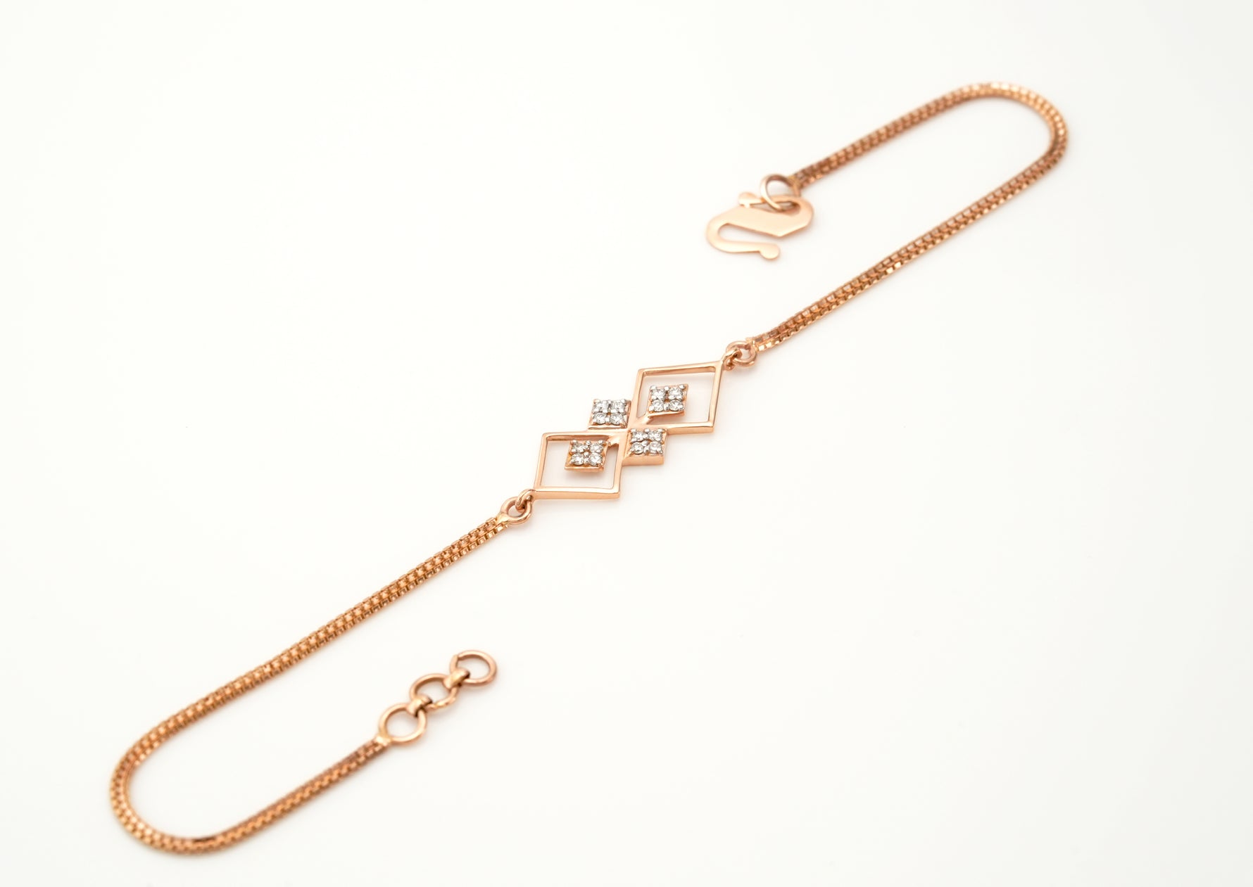 A graceful bracelet featuring two elegant square heads, each meticulously adorned with shimmering diamonds. The 16 diamonds are precisely set to reflect brilliance, making it a perfect blend of geometric charm and timeless elegance.