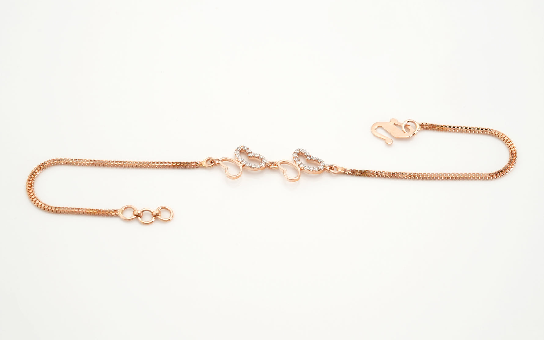 A delicate bracelet featuring two enchanting butterflies, their wings gracefully outlined with 30 sparkling diamonds. This design captures the beauty of transformation and freedom, making it a perfect symbol of elegance and charm.
