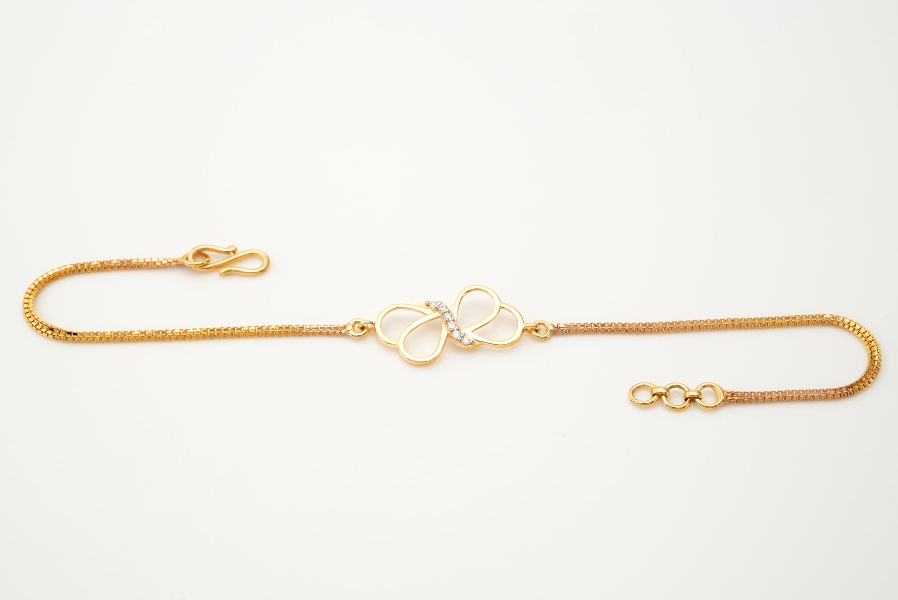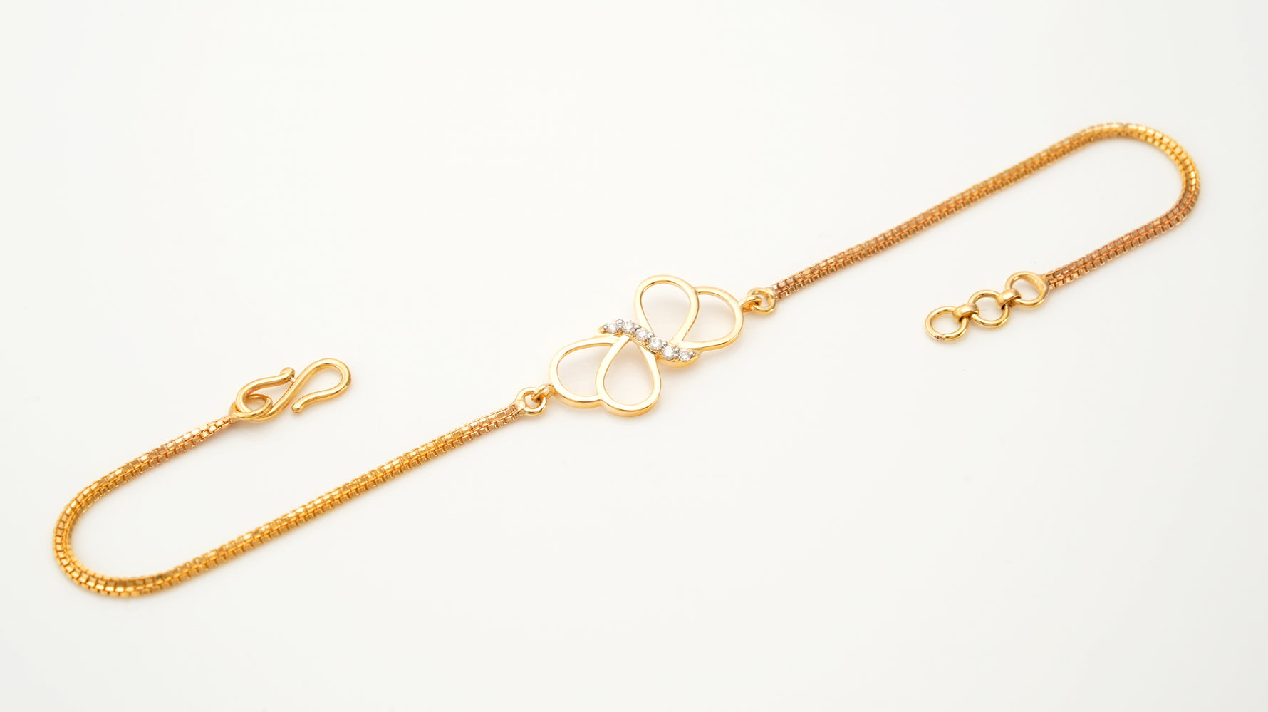 A delicate bracelet designed in the graceful form of a butterfly, accented with 6 sparkling diamonds. This piece symbolizes transformation, freedom, and beauty, making it a timeless and meaningful jewel.