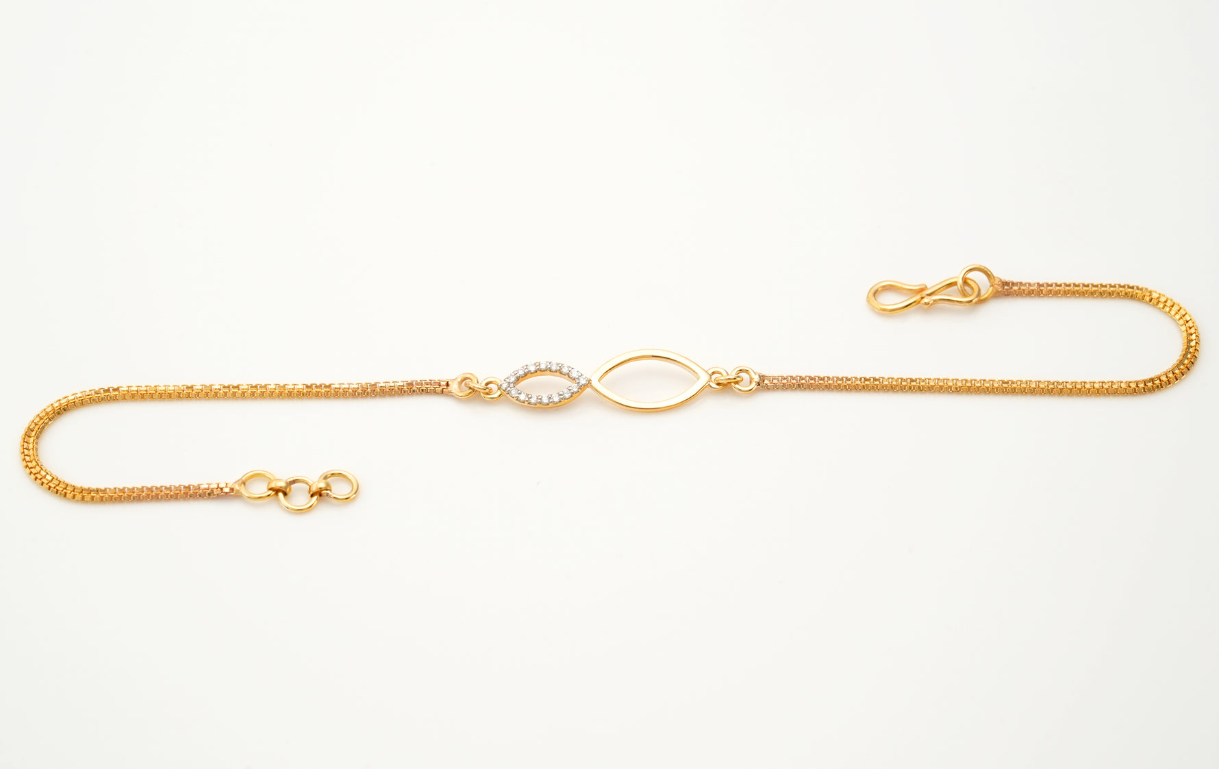 A sophisticated bracelet featuring two elegant marquise-shaped heads, delicately encrusted with 16 dazzling diamonds. The marquise design, reminiscent of graceful leaves or eyes, represents vision, growth, and refined beauty. This piece is perfect for those who love jewelry with both symbolism and sparkle.