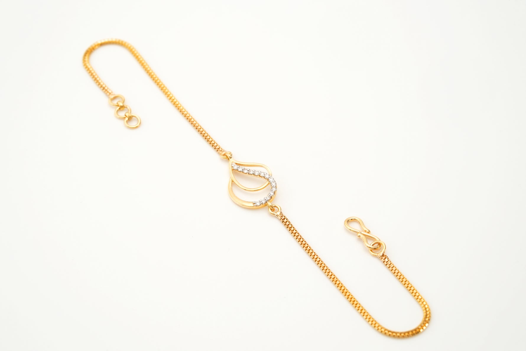 A graceful bracelet featuring a drop-shaped head, delicately encrusted with 14 sparkling diamonds. The drop symbolizes purity, elegance, and timeless beauty, while the diamonds add a radiant brilliance, making it perfect for both modern and classic styles.