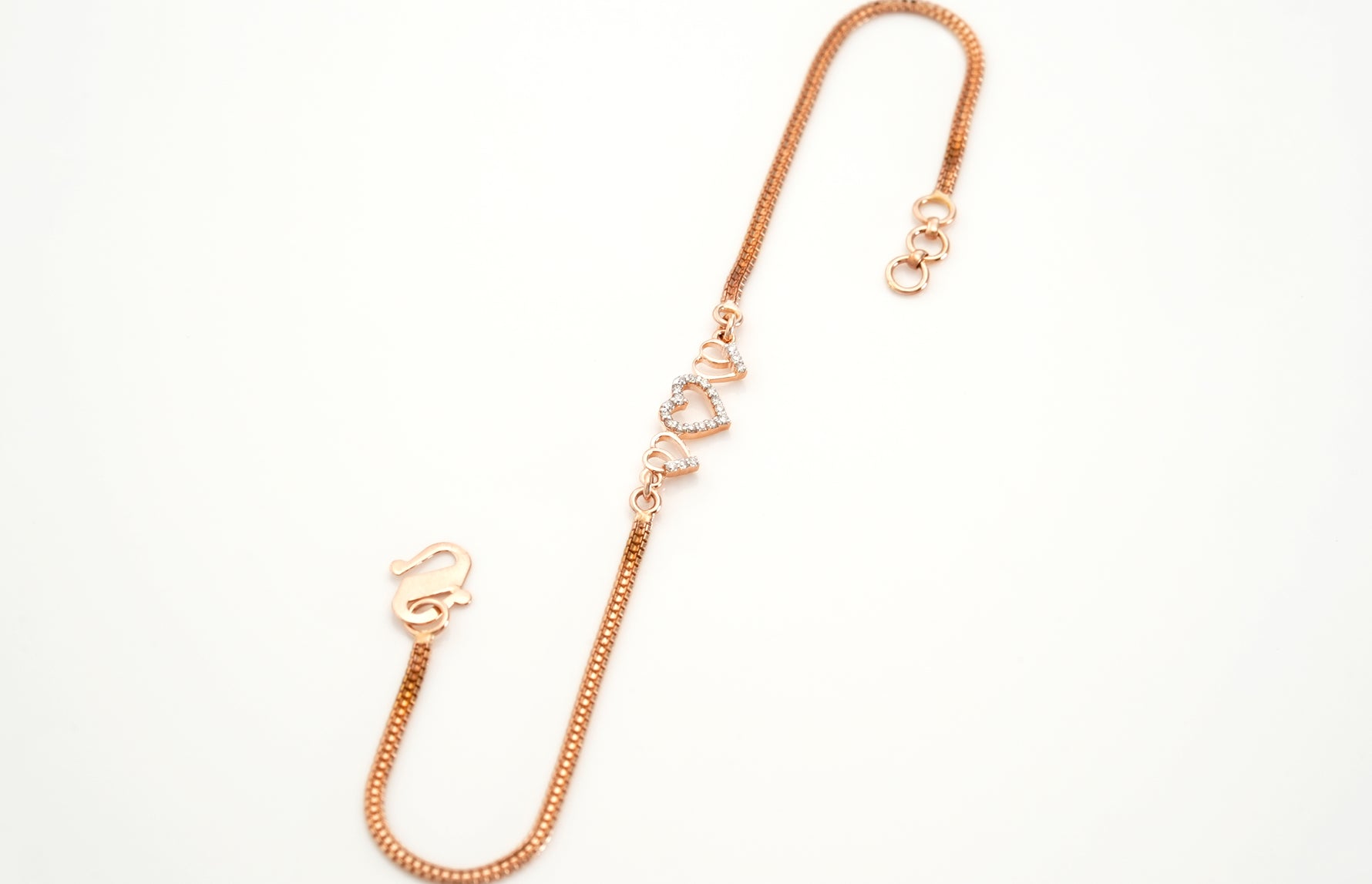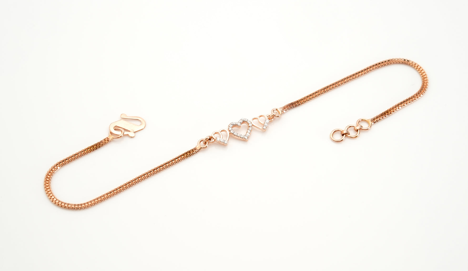 A romantic bracelet featuring three beautifully aligned hearts, each accented with 22 sparkling diamonds in total. The triple-heart design symbolizes love, unity, and everlasting bonds, making this piece both meaningful and radiant.