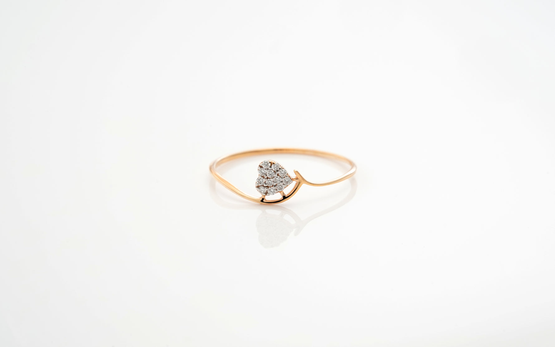 A graceful curved band cradling a heart-shaped head adorned with 12 dazzling diamonds, symbolizing radiant love.